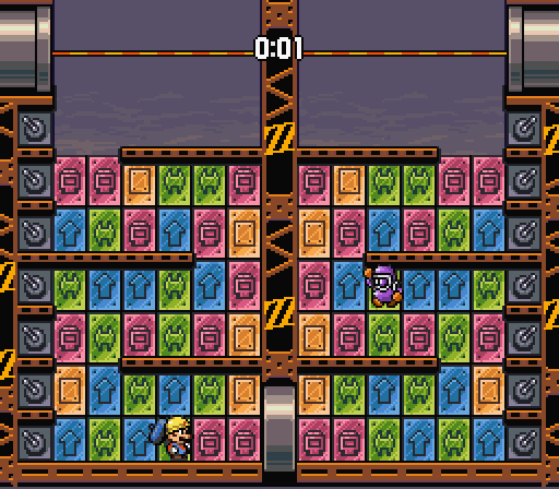 A good reason for that is probably because the original Wrecking Crew isn't a beloved game outside Japanese shores. That, plus there's that fact that Wrecking Crew '98 was a shot little game of just a few quick puzzle stages, and you have a recipe for a game that simply wasn't geared for international release. That's sad, though, because Wrecking Crew '98 is a cute, fun little twist on the Puyo genre of puzzle games, one with just enough interesting twists to make it infectiously playable. It certainly deserved a bigger life than the one it received.