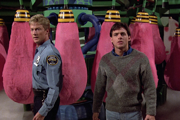 At Debbie’s suggestion they go to see Dave Hansen (John Allen Nelson), a beat cop working at the local P.D. who is also Debbie’s ex-boyfriend. They tell him about the space tent and the killer klowns and everything they saw but, as you would expect, Dave doesn’t believe them. He sends Debbie home while taking Mike out to the farmer’s land to verify everything and, when nothing is there, he arrests Mike for making the whole thing up. Soon, though, people start dying and the evidence of killer klowns really begins to build up, eventually forcing Dave to acknowledge Mike was right… but only after Debbie gets captured by the klowns. Now the guys are going to have to work together to defeat the klowns before everyone, Debbie included, ends up dead.