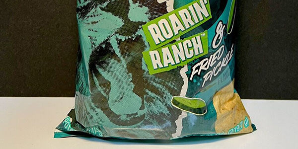 But when it comes to flavor, the chips really fall flat. The chips taste neither like ranch or pickle, finding a muted middle ground that speaks to neither. Reading the label you see, up front, “Roaring Ranch”. So, first and foremost these should be ranch chips, yes? Bold ranch seasoning on the chip that gives you that creamy zing when you snack on it. But the chips lack creaminess to the flavor. The ranch is barely noticeable at all, without a hint of classic buttermilk, dill, or salt. Whatever roar is supposed to be on this Roaring Ranch is lacking on these chips.