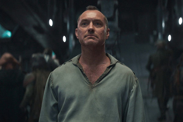 But then, Jude Law also perks things up all on his own. He really seems to enjoy his character here, playing someone that doesn’t properly fit the mold of anyone we’ve seen in the Star Wars universe before. He’s not just a colorful villain, even if at times he does chew a little scenery. He’s a Force user, but neither Jedi nor Sith so he doesn’t fit into the clear “good” or “evil” boundaries those two sects belong to. He’s a rakish personality, but not in the same mold of Han Solo. He gets to be his own kind of character, played with aplomb by the actor, and because of that we’re never really sure what he’s going to do within the bounds of the story. He doesn’t play by the standard conventions of Star Wars and that makes him especially interesting.